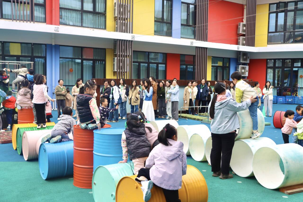 此次研修围绕“学习借鉴、实践提升、交流反思”三大目标,采用现场观摩、案例分享、互动研讨、专家报告相结合的形式开展。上午,全体教师先在张家港市白鹿幼儿园参观园所环境,之后观摩了三节大班集体活动,分别是语言活动《如果你像喷泉一样哭泣》、数学活动《小小导航员》、健康活动《一颗慢吞吞的种子》,紧接着去户外观摩《好玩的滚筒》、《趣玩平衡》和《小勇士》等体育游戏,最后在专家点评与集中研讨中,聚焦课程亮点与改进方向深入交流。下午,全体教师转场至张家港市新塘幼儿园,通过观看园所宣传视频、聆听运动课程开展情况介绍、学习《我的滑索探险记》课程故事,进一步汲取经验;随后实地参观托育中心,并观摩户外体育活动与游戏展示,丰富了研修实践认知。