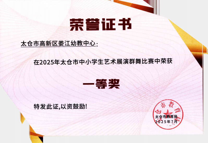 高新区娄江幼教中心喜获2025年太仓市中小学生艺术展演群舞比赛一等奖