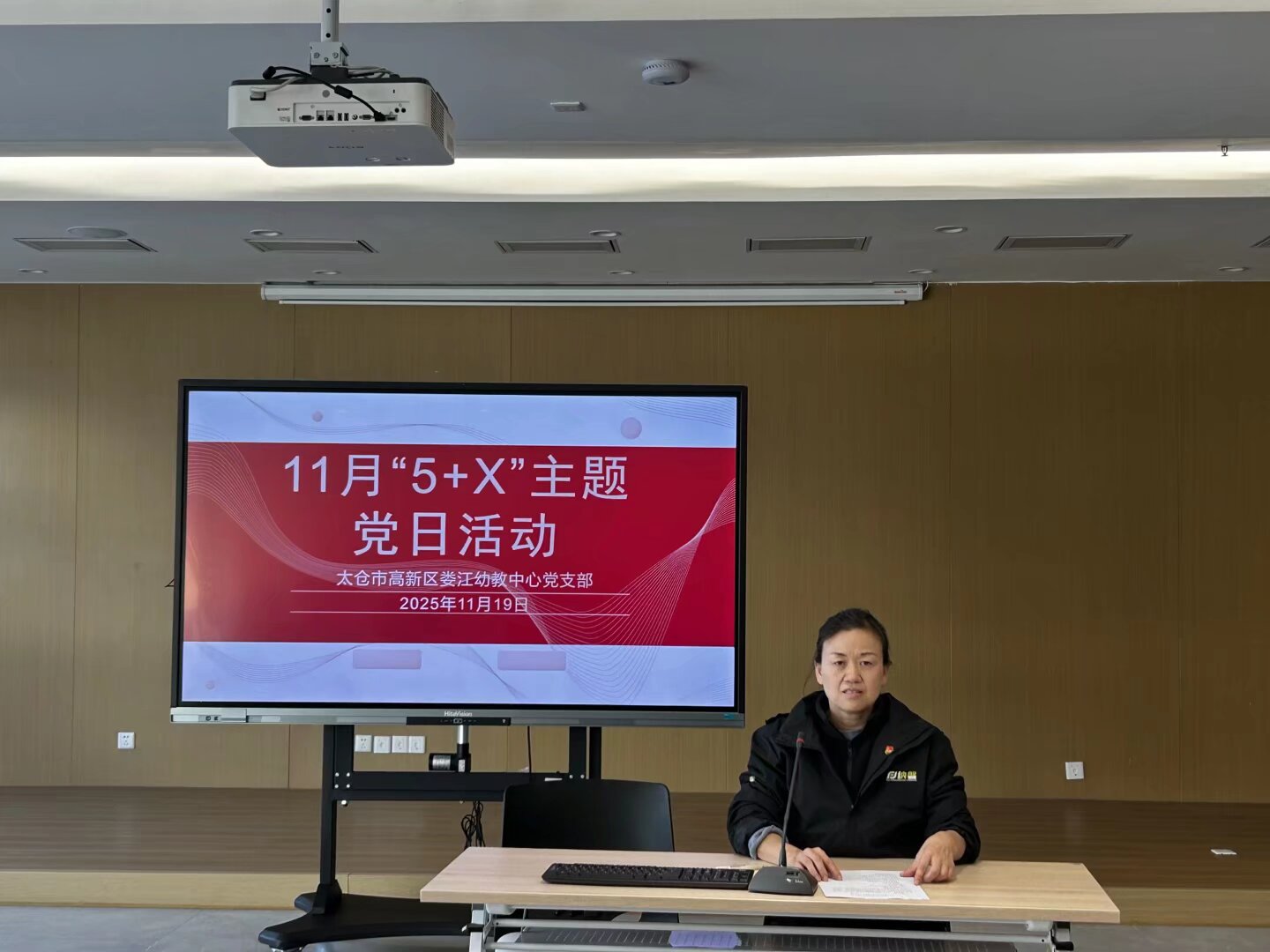 2025年11月20日下午14:00,太仓市高新区娄江幼教中心党支部在东郊幼儿园二楼大会议室隆重开展11月“5+X”主题党日活动暨专题组织生活会。活动以“学习贯彻党的二十届四中全会精神”为核心主题,旨在引导广大党员干部深入领会习近平总书记重要讲话和全会精神,切实把思想与行动统一到党中央决策部署上来。