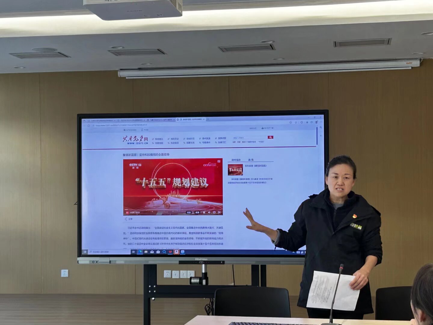 活动伊始,按照“5+X”主题党日规定动作要求,党支部书记沈英带领全体党员集中学习党的二十届四中全会相关重要内容,重点学习了《中国共产党第二十届中央委员会第四次全体会议公报》,共同研读了《在新时代新征程续写经济快速发展和社会长期稳定两大奇迹新篇章——中共中央举行新闻发布会解读党的二十届四中全会精神》《习近平总书记2025年治国理政纪实——奋力打开改革发展新天地》等权威资料。同时,围绕“十五五”规划制定相关文件,组织学习了《中共中央关于制定国民经济和社会发展第十五个五年规划的建议》、习近平总书记关于该建议的说明,以及《擘画新蓝图》解读视频、《为基本实现社会主义现代化奠定更加坚实的基础——〈中共中央关于制定国民经济和社会发展第十五个五年规划的建议〉诞生记》等内容,帮助党员干部全面把握“十四五”时期重大成就、“十五五”发展形势与目标任务。