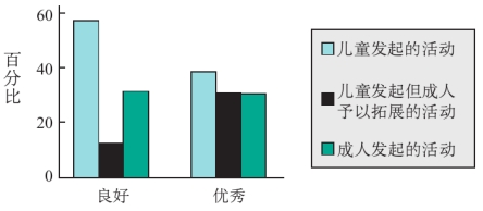 然而,怎样算是在成人主导的活动(教学为主)和儿童主导的活动(游戏为主)之间提供了最佳平衡?英国“有效的学前教育项目”关于优质课程活动结构及其比例的研究(见图5)对我们或许有一定的启发。