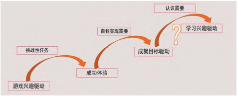 儿童最初的游戏行为无疑是由直接兴趣驱动的。但由于该游戏包含许多问题和挑战性的任务,儿童必须一一解决,方可满足游戏需要,而儿童解决问题完成任务后又必然会获得一种成功体验。久而久之,在后来的活动中,除了游戏兴趣的驱动外,成就动机(包括在活动的每一步完成任务的需要)以及体验到胜任感、成就感的需要,都将成为一种驱动力。这种成就动机迁移到不同类型的活动中(包括学习活动),就会使儿童在任何活动中都追求成功体验。具体到学习活动中,成就动机加上伴随年龄增长而产生的认识世界的需要,就可能会慢慢转换成学习兴趣(见图8)。当然,这只是一个假设,是否成立还需要进一步研究、验证。目前,心理学界关于游戏与儿童执行功能的研究或许会给我们带来更多启发。