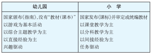 幼儿园课程与小学课程之间长期存在着差异(见表1)。