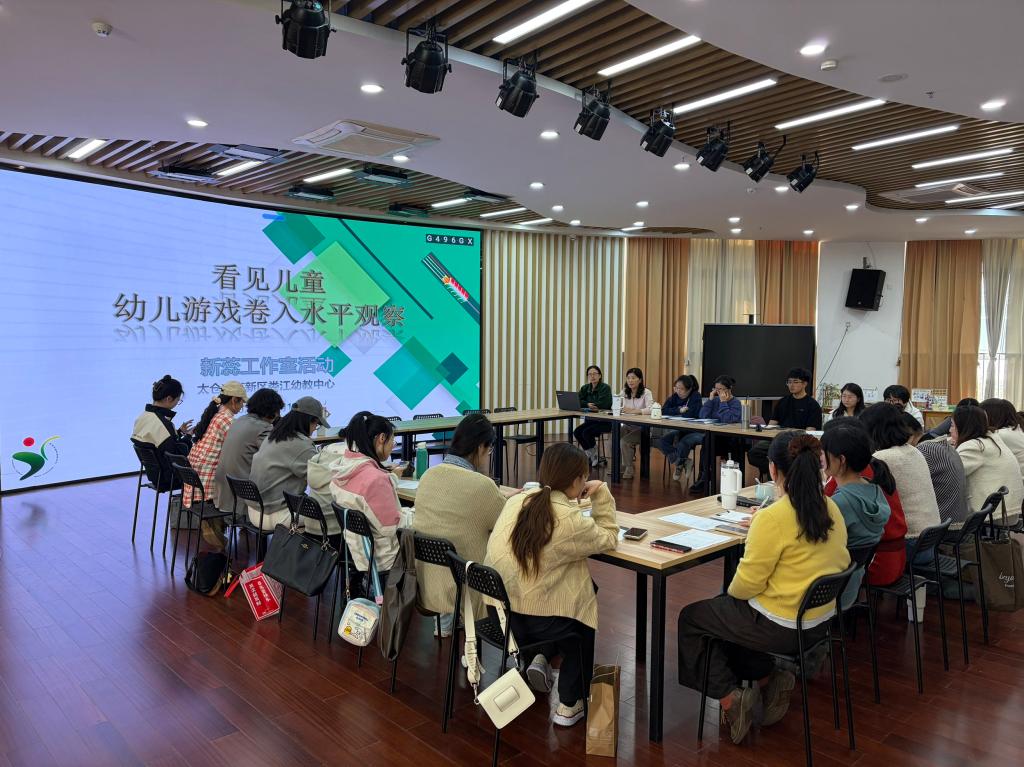 2025 年11月10日下午14:00-16:30,为破解院子游戏中 “观察数据不聚焦、教师量表使用存疑、支持策略无方向” 的困境,完善 “卷入量表推进区域游戏” 研究闭环,太仓市高新区娄江幼教中心聚焦娄江幼儿园 “院子游戏” 研究方向,组织新蕊工作室教师在娄江幼儿园多功能室开展专题园本教研活动。