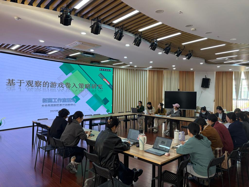 2025年11月13日上午9:00-11:00,为筑牢“观察 - 分析 - 调整 - 再观察”的研究闭环,提升教师基于观察的游戏指导能力,新蕊工作室围绕 “基于观察的游戏卷入策略研究” 主题,在娄江幼儿园二楼多功能室开展专题教研活动。